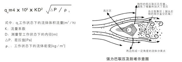 忽略一些影響不大的因素,按速算式推導(dǎo)出“強(qiáng)力巴流量計(jì)”的理論方程式:
