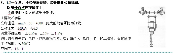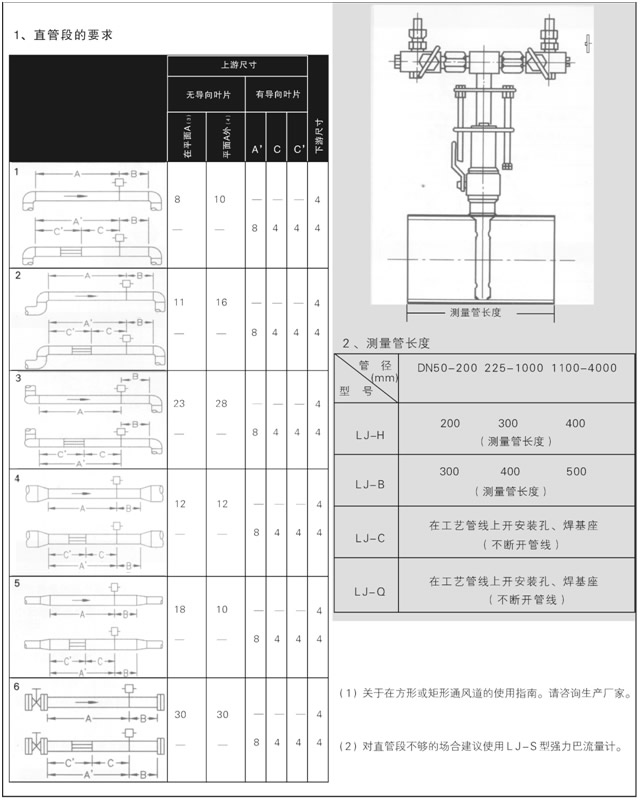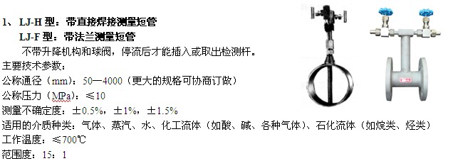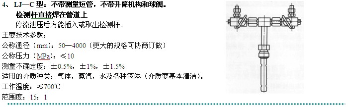 1、對(duì)新敷設(shè)的管路,推薦選用LJ-B型;如果工藝流程能夠在需要時(shí)停流,為了降低儀表的最初投資,推薦選用LJ—H型。這兩種都帶一段測(cè)量短管,能夠確保檢測(cè)桿在測(cè)量段的正確位置,測(cè)量精確度較高。