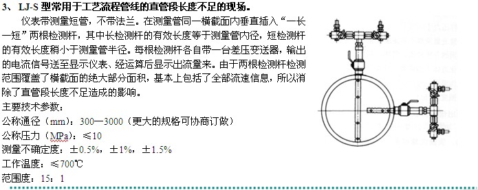4、對(duì)于直管段長(zhǎng)度不足的場(chǎng)合。如果要求測(cè)量精確度不能因此而降低,推薦選用LJ-S型。