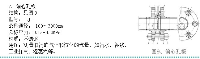 2)臟污介質(zhì)用 圓缺孔板,偏心孔板,環(huán)狀孔板,楔形孔板,錐形孔板,彎頭節(jié)流件等;