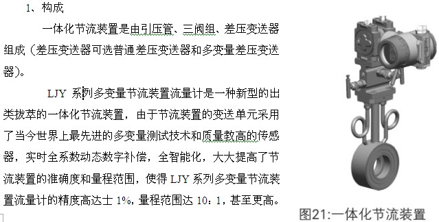 差壓式流量計是一類歷史悠久、用量較大的流量計。以節(jié)流裝置作為檢測件的差壓式流量計則是其中較為廣泛應用的一類流量計。我們稱之為節(jié)流式差壓流量計,它應用范圍非常廣。所有單相流體,包括液、氣、蒸汽等皆可測量,部分混相流體,如氣固、氣液、液固等亦可應用,一般工業(yè)生產(chǎn)過程中的管徑,工作狀態(tài)(壓力、溫度)皆可測量。為適應廣泛的使用需要,節(jié)流件檢測裝置有數(shù)十種之多。標準節(jié)流裝置(孔板、噴嘴)是全世界通用的,并得到國際計量組織的認可(IS05167),使得它無需實流校準而可預估流量與輸出信號的關(guān)系及測量誤差。