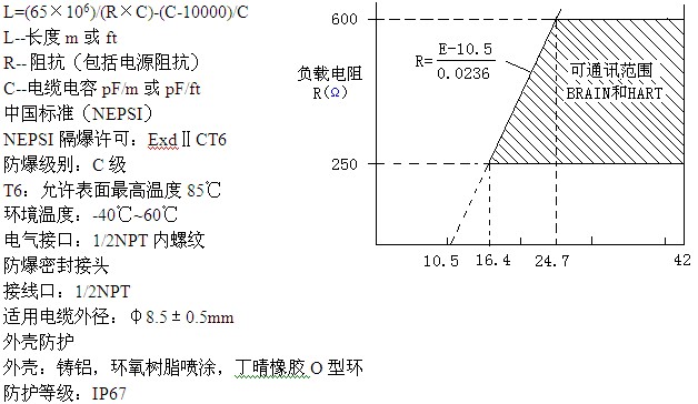 通訊距離:用多芯雙絞線的最大通訊距離為1.5Km,通訊距離因電纜類型而異,可用下述公式確定 電纜長度: