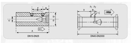 LJVVG系列V錐流量計(jì)正壓孔取在錐體上游的管壁上,取壓位置選在理想流體的